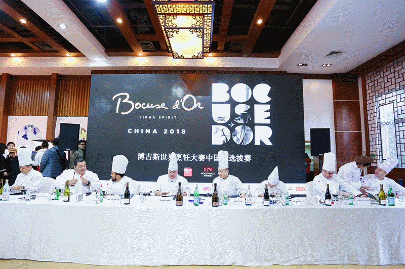 2018博古斯中國賽評委團:博古斯中國學會主席/上海米其林一星餐廳泰安門創始人Stefan Stiller;著名女行政主廚邱瓊;2014及2016博古斯中國賽冠軍林韋龍;Jean Georges餐廳大中華地區行政總廚Paul Eschbach;L'Atelier de Jo?l Robuchon中國區行政主廚Francky Semblat;上海8? Otto e Mezzo主廚Riccardo La Perna;The Commune Social創始人Scott Melvin;廣州南沙花園酒店總經理/中國烹飪協會名廚專業委員會委員龍偉彥(Hardy Lung)。